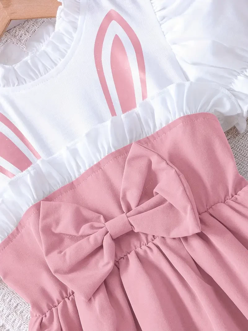 فستان صيفي كرتوني للبنات بأكمام منفوخة وربطة، مثالي للارتداء اليومي