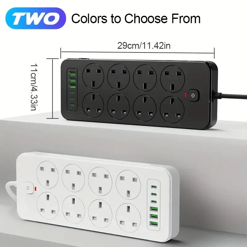 / ثمانية منافذ تيار متردد / USB سلك بطول 2 متر /3250 واط 13 امبير /6 منافذ
