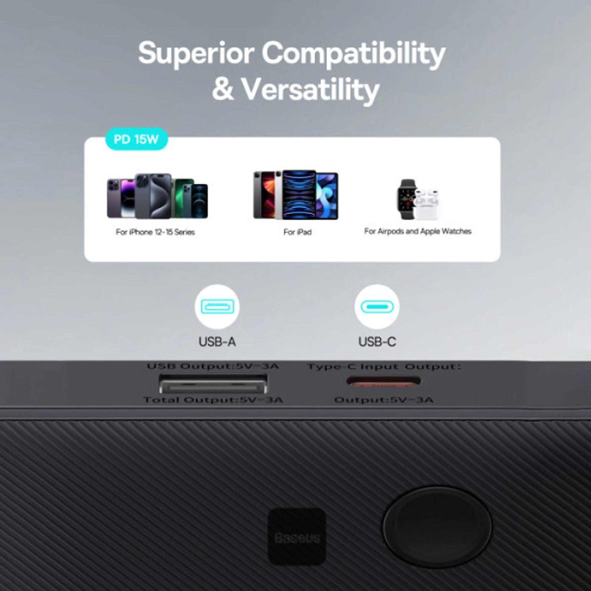 مع امكانية شحن جهازين في نفس الوقت مع تصميم خفيف الوزن و الحجم و متنقل mha10000 باور بنك / شاحن محمول بقدرة 15 واط بطارية سعة