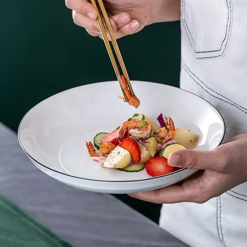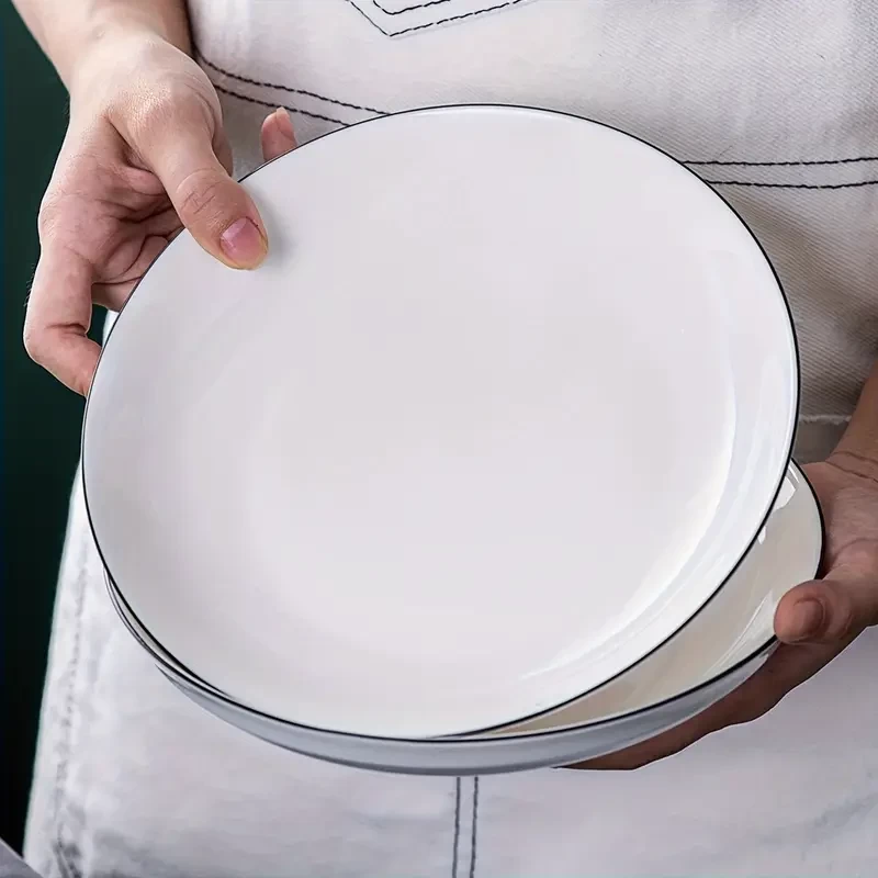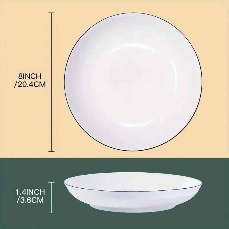 صحون عشاء من السيراميك بحواف سوداء: صحون سلطة بقطر 8 بوصة، صحون حلوى بقطر 1.4 بوصة، مناسبة للفرن والميكروويف وغسالة الصحون