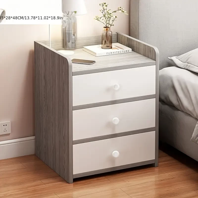 طاولة جانبية مع ثلاثة ادراج لتخزين الاشياء في غرفة النوم
